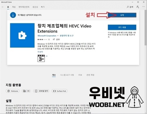무료버젼 접속 : "hevc video extensions 설치" 클릭 한다.