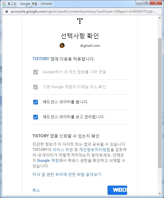 5. TISTORY 앱에 다음을 허용합니다 최종 허용 하기.