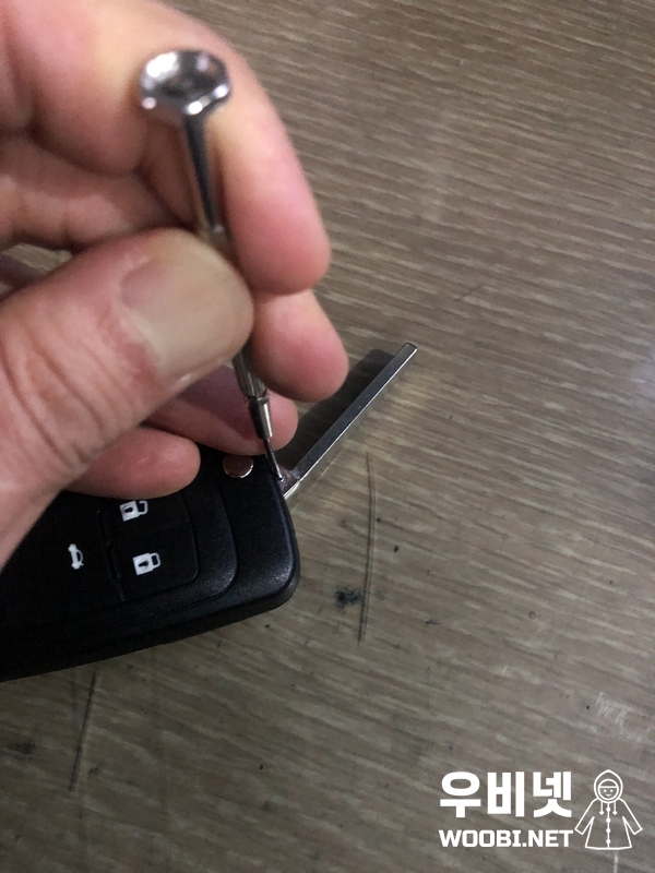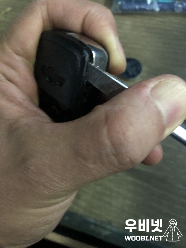 키날 부분에 일자 드러이버로 사이에 끼워서