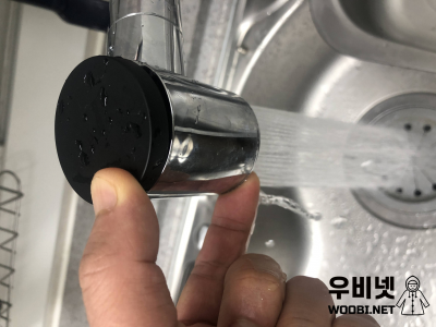 헤드(키친스프레이)의 스프레이 및 포말로 전환할 때 버튼만 누르는 것이 아니라