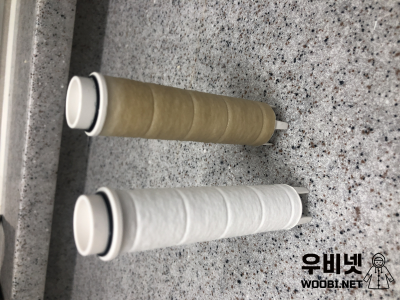 필터용 수전을 왜 써야 하는지 보여주는 필터의 모습이다.