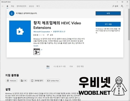 무료버젼 접속 : "hevc video extensions 설치" 클릭 한다.